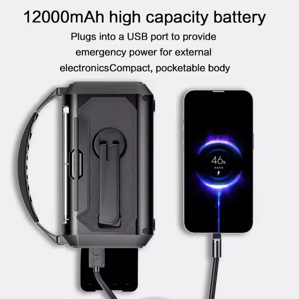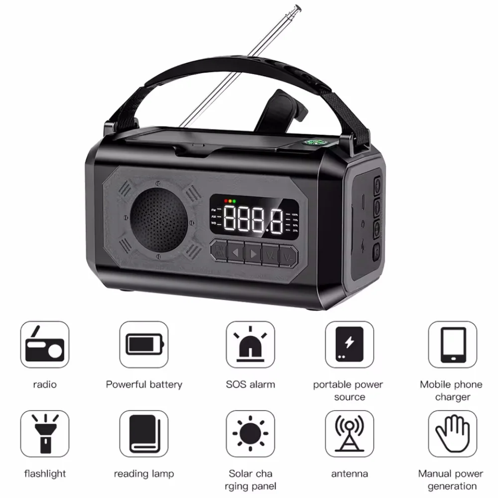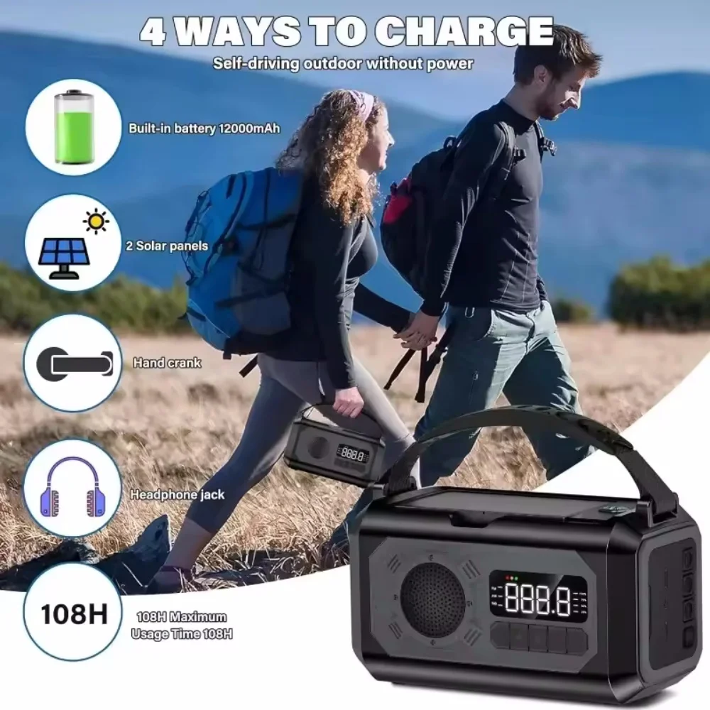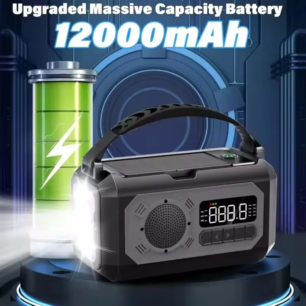 12000mAh AM/FM/NOAA Weather Radio with Solar Panels Solar Hand Crank Portable Emergency Radio Reading Lamp for Outdoor Camping