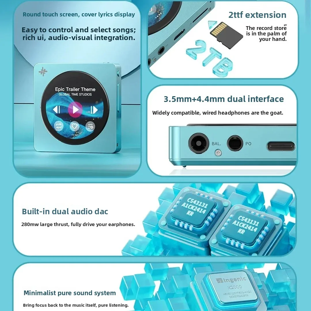 This portable Hi-Res MP3 player is engineered for exceptional sound quality, delivering rich, detailed audio for true music enthusiasts. Supporting high-resolution and lossless formats, it provides an immersive listening experience with clean highs, balanced mids, and deep lows. Advanced Bluetooth 5.4 and WiFi connectivity allow seamless wireless playback with headphones, speakers, and networked audio systems.